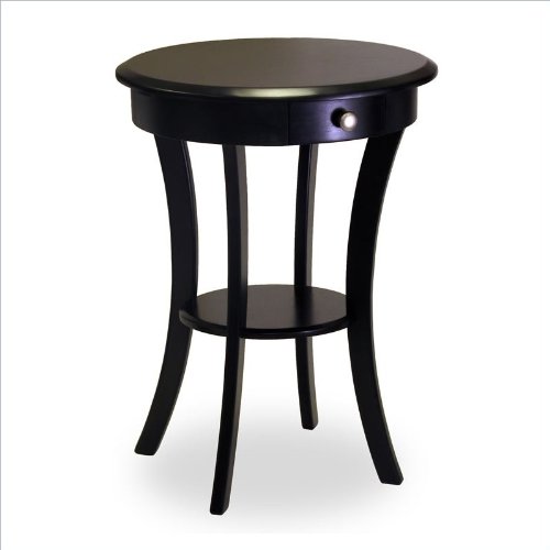 This black beechwood accent table by Winsome exudes simple sophistication, thus making it the perfect addition to any room. Though it may be suitable for many room configurations, it's smooth curves and ample storage make it far from a boring table. It features plenty of storage and solid beechwood construction as well, making it just as practical as it is stylish. Features: Versatile as end table or accent table. Sophisticated Black Finish Table has one drawer and one shelf for plenty of storage space Its curved, smooth design blends well with any room decor. Made from Solid Beechwood Easy to clean Dimensions: Width = 20" Height = 27" Depth = 20"